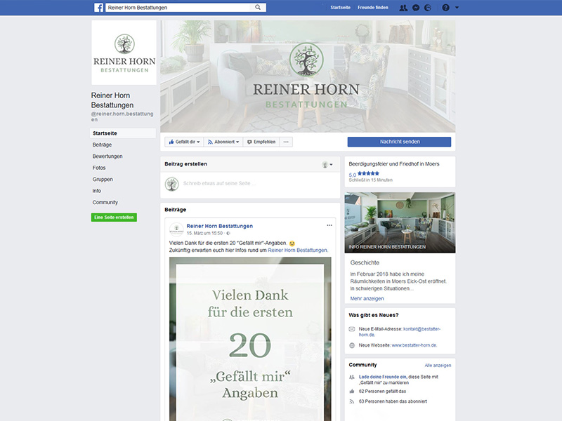 Seit ein paar Tagen bin ich nun auch mit einer eigenen Unternehmensseite als Bestatter in Moers auf Facebook erreichbar.
